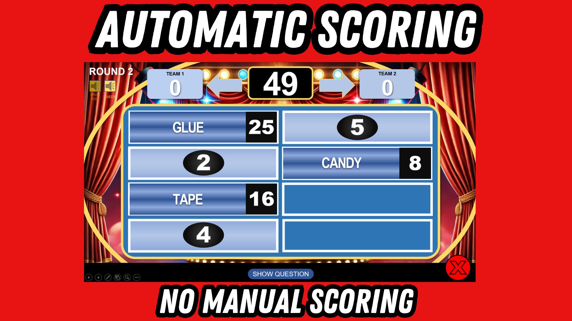 Built to mimic the real game show experience, complete with a scoreboard, sound effects, and exciting visuals.